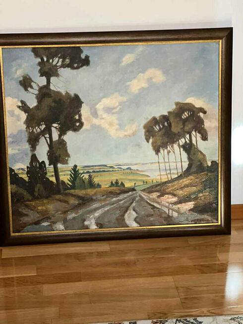 Obraz olejny , wys .79 cm z ramą, szer. 87 cm z ramą, rama szer. 5 cm. Sygnowany , brak możliwości/ dla mnie/ odczytu ...