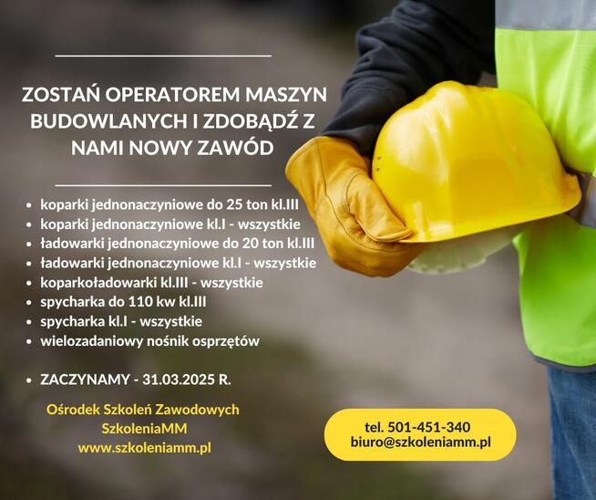 Już po majówce ruszamy ze szkoleniem dla przyszłych operatorów maszyn budowlanych. Profesjonalna kadra, nowoczesny ...