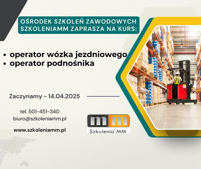 Ośrodek Szkoleń Zawodowych SzkoleniaMM zaprasza na szkolenie operatora: - wózka jezdniowego - ...